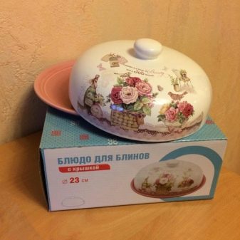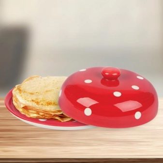 Usually it is represented by a pancake dish with a lid. The so-called crepe maker is a standard-sized dish, complete with a hemispherical lid. Models are made from ceramics, glass, plastic, porcelain, crystal and aluminum. It should be remembered that not all products can be washed with abrasives. You must carefully read the marks on the package before use.
