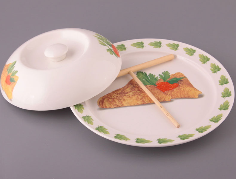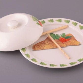 Decoration of any holiday table will be a pancake set with plates. Such a set can be made of ceramic, porcelain or glass.
