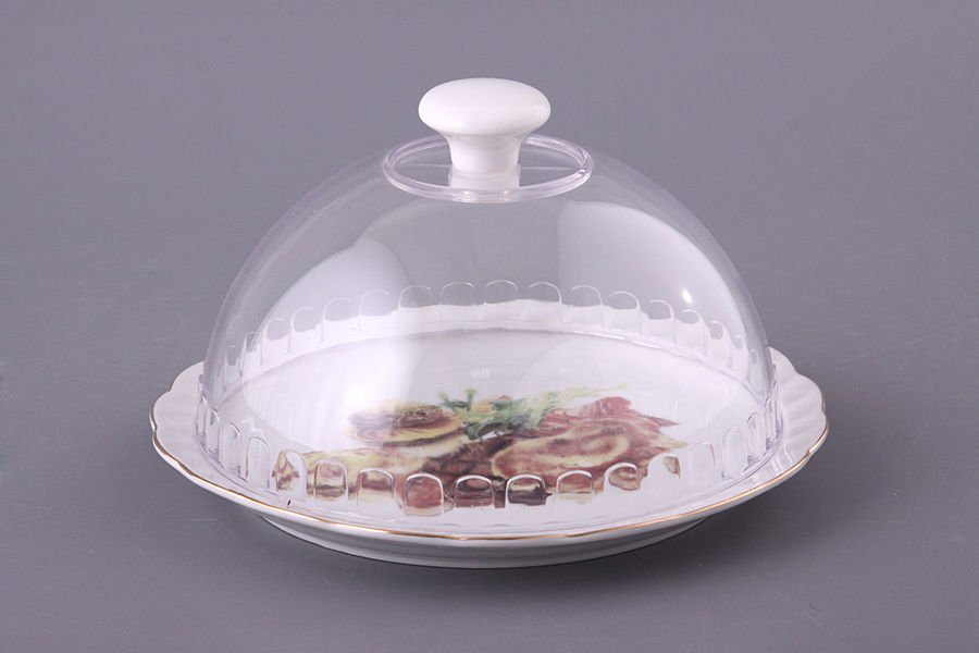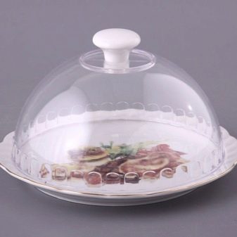 The cover of the product must be high. Because of the increased temperature inside the dish accumulates moisture. High dome cover does not allow moisture to get on food. Not too high forms also have their advantages. Such dishes take up little space and are convenient for storing small dishes.