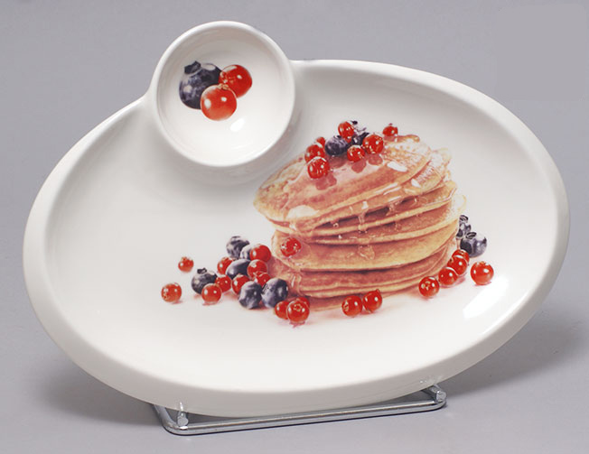 Some sets of plates come complete with sauce-dish. It is convenient and practical. Extra dishes for honey and jam is not needed. The main dish for serving has a small depression in the form of a small saucer with high sides, where they pour the various sauces for pancakes. Such an attribute will not only emphasize the good taste of the hostess, but also will be an excellent decoration for any table.