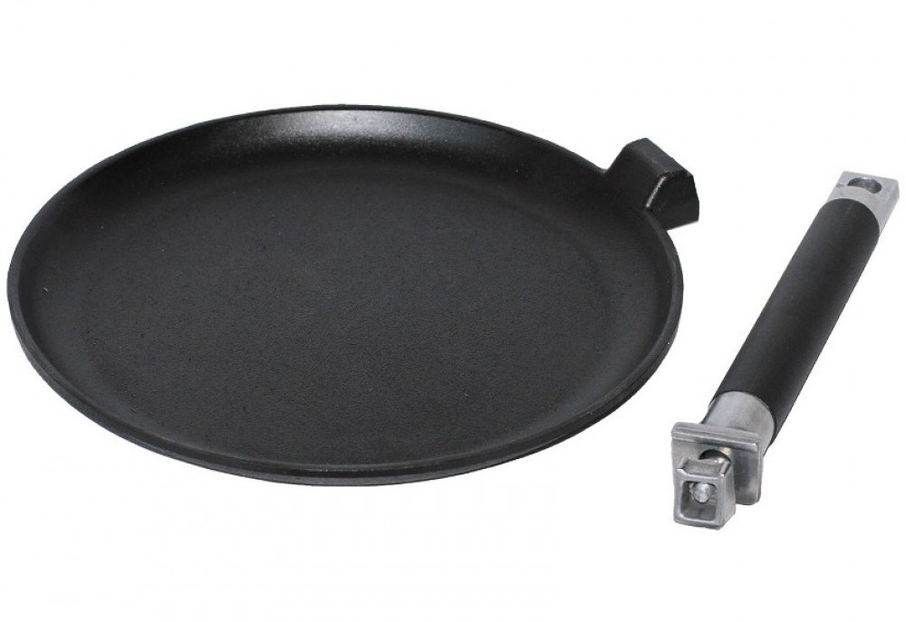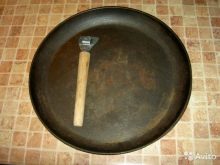 - Cast iron. Such pans are usually not sold with chapel, as cast iron is a heavy metal. Disconnecting a poorly fixed handle, you can get injured by a fallen iron pan. Moreover, such dishes are very hot and, by attaching a holder to it, you can accidentally get a strong burn. In the old days, a special grip for a cast-iron frying pan was widely used. He was quite strong and had a long handle.