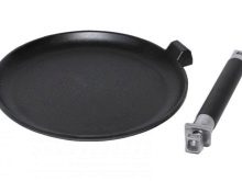 - Pancake pan. Pancake pans are mainly with fixed handles, so it is more convenient to hold them in your hand when cooking pancakes. But now this type of pans is also available with a chapel. This is a huge plus when storing kitchen utensils.