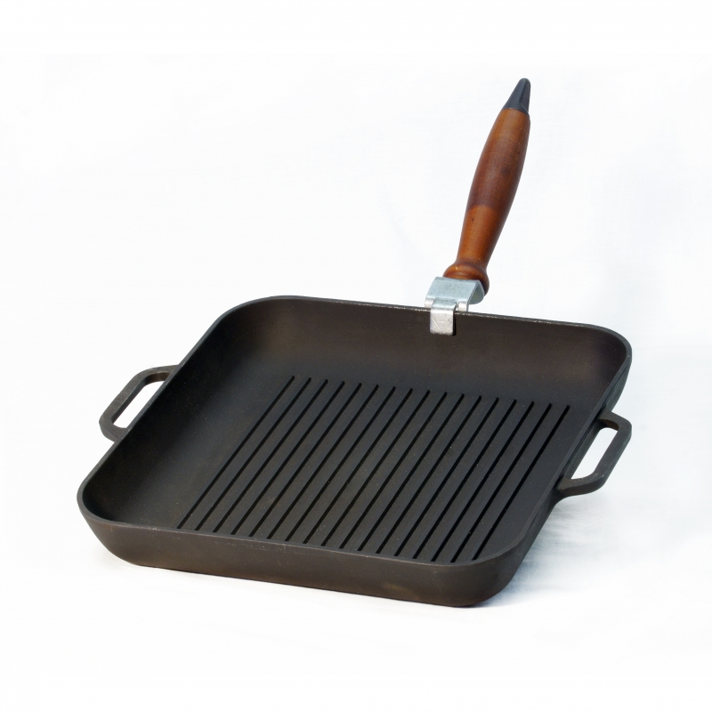 - Grill pan. This type is very often sold with a removable handle. Chapel is easy to detach in order to put the grill pan in the oven. For this type of kitchenware, this is a very convenient device.
