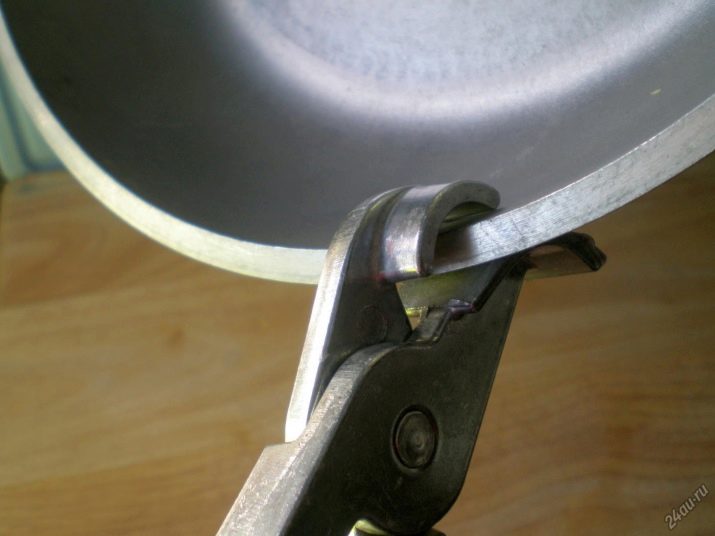 - Using a clamp. With this option, the chapel can be disconnected by unwinding a clip attached to the holder. But the hostess has to use with both hands, which is not very convenient. In addition, if the pan is hot, you can burn your fingers.