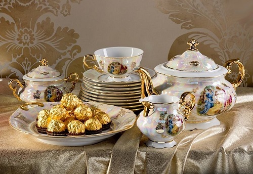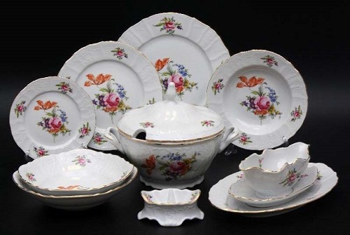 Czech porcelain is most often purchased in the form of tea sets or table sets, combining the maximum number of objects, and not just plates and cups with cups. For example, a tea set for 6 persons can consist of 15 items, including a teapot, a sugar bowl, a milk jug, and a set of saucers with cups. A typical table set for 6 persons consists of 24 items. In six instances in this case, various plates are presented: deep, shallow and dessert. In addition, the package includes an oval dish, a round dish, a pair of salad bowls, a salt shaker, and a round sauce pan on a stand. Of the unusual dishes related to Czech porcelain, mention should be made of a bread box, a bowl for bones, a butter dish, a set of spices, a container for oil, lemongrass, napkin rings and many others.