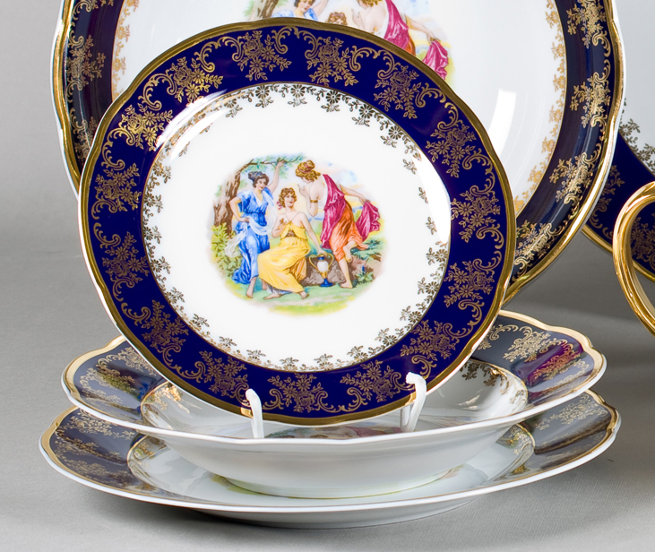 Porcelain products are never coated with icing or paint by the conveyor method, that is, production. Only hand-painted can preserve and increase the magnificence of the material. Naturally, such an item will cost more.
