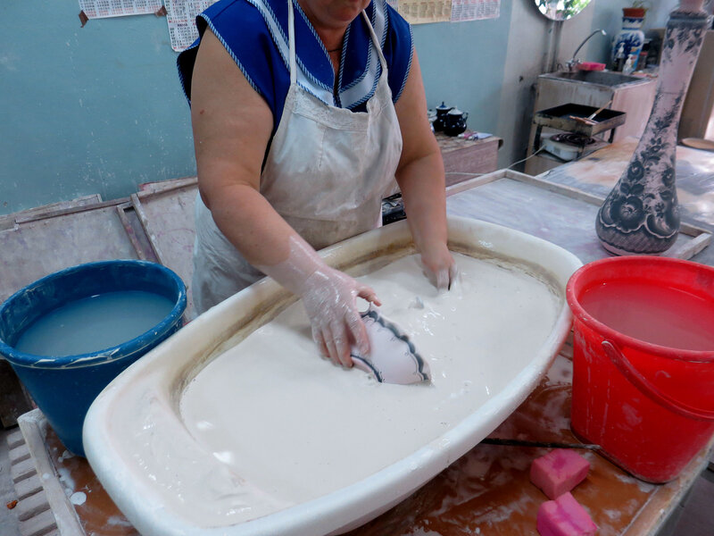 At the second stage of making faience masters have to give shape to the mass, and then - burn it. Porcelain is shaped due to plaster, followed by thorough drying. And only after drying, porcelain is burned, using special furnaces for this, the temperature in which must be strictly controlled.