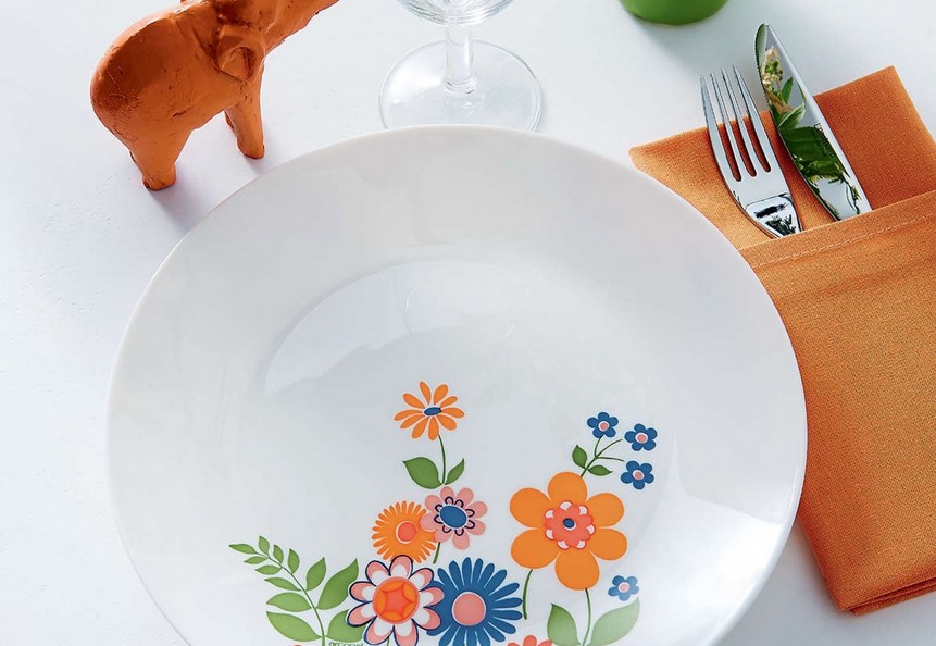 Well-known brand offers dishes from patented material. The brand created a sensation by presenting more than 50 years ago the first table sets on the market made of a special hardened alloy - opal glass. Experts call the material used a breakthrough in the manufacture of glass products. On the creation of dishes work not only experienced craftsmen who know a lot about the processing of raw materials, but also professional designers.