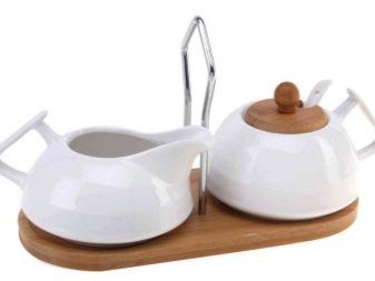Also exist milk jugs, creamers, sauceboats and spice equipment. The first two names of ceramic dishes are used to supply milk and cream for tea and coffee. Sauceboats are necessary for serving cold sauces and have a handle and a drawn nose. Devices for spices are needed for serving the table.