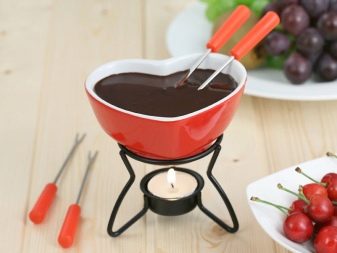 There are also ceramic fonduewhich are usually made of heat-resistant ceramics and are complemented by saucers for sauces, as well as special forks of great length. Such decisions dates the opportunity to cook and decorate various dessert fondues.
