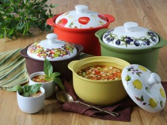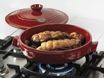 Ceramic dishes will be an excellent solution for gas, electric and glass-ceramic cooktops.And it is better to use such dishes on the burners, which will be slightly smaller than the diameter of the pan and pan. And for cooking in the oven, the dishes should have handles that can be removed if necessary.