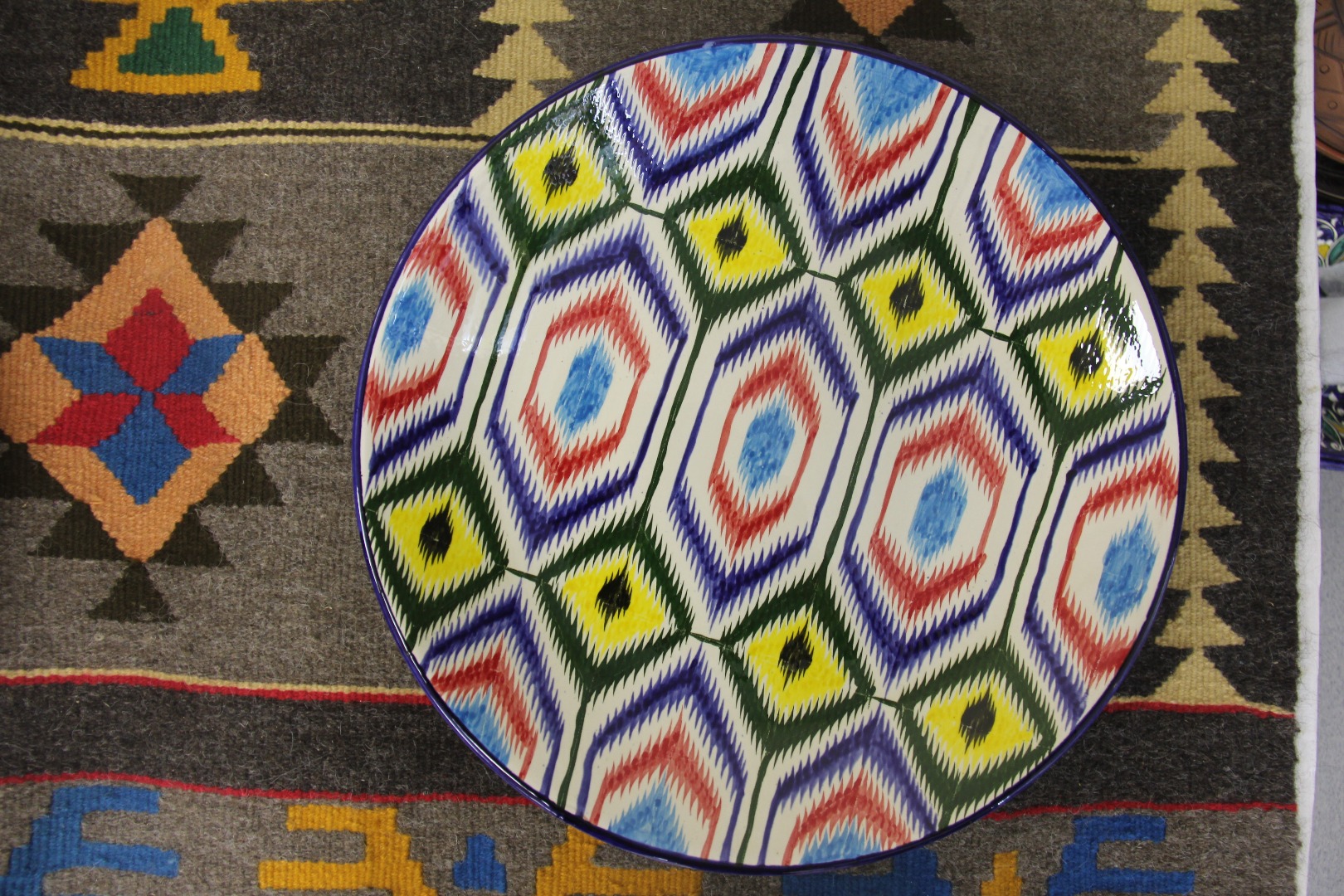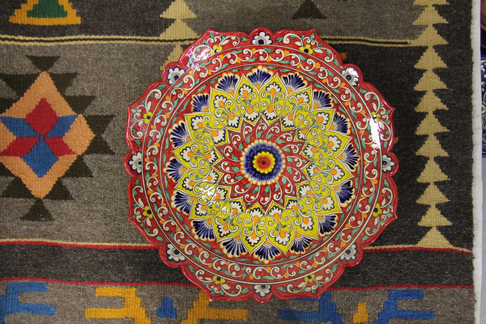 A lagan made by a craftsman, like the rest of the ceramic tableware, may in time manifest one feature. Products covered with glaze, which is also produced from natural materials and dyes. Over time, the glaze can become covered with cracks, which is considered the norm for the Uzbek hand-made. This lyagan with wrinkles is very much appreciated in traditional families and passed down from generation to generation.