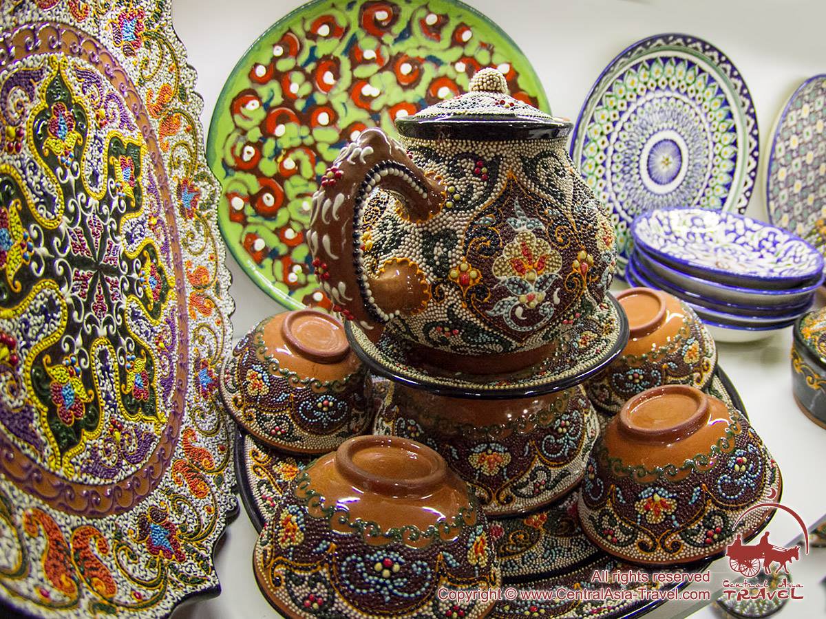 Porcelain from Khorezm is famous for its horizontal pattern on the edge of the frog and the same white and blue color scheme that comes to us from the Eastern Middle Ages. Khorezm tableware is thin to the touch, has bumpers located almost at a right angle. Lyagan from Bukhara and Gijduvan can even hypnotize with their paintings.