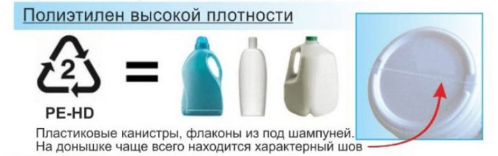 - Number 2 (LDPE) - since this polyethylene has an increased density, it is often used again, although its degree of safety is considered conditional.