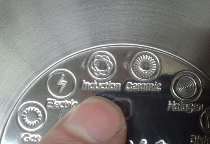 - Four vertical loops and the word induction. And this designation indicates the possibility of use on an induction cooker. The principle of operation of induction is that the surfaces in an electric discharge form a magnetic field. This field heats up and the cooking process is much faster.
