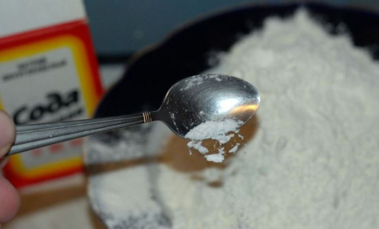 - Pour soda on the bottom with the calculation of 1 tbsp. l on 1 l. water;