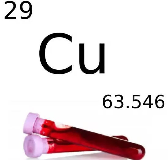- copper in microdoses is present in the blood, the metal has antibacterial properties and is an essential component of many enzymes; daily dose for an adult - 0.9 mg;