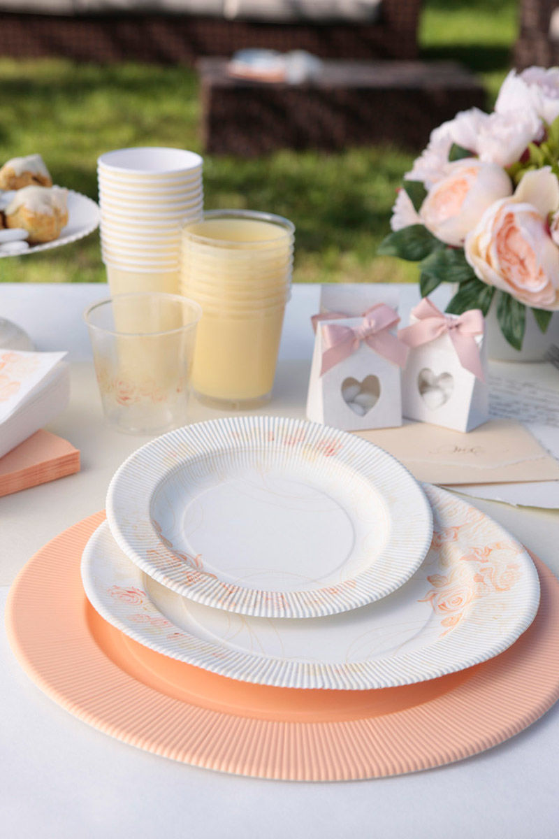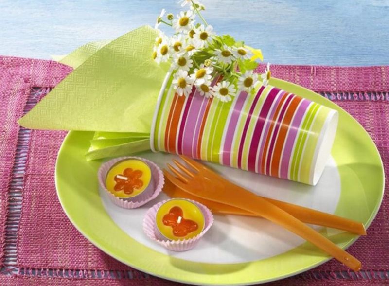 - Before guests start feasting, place beautiful paper napkins on disposable plates, and fresh flowers, rosebuds or daisies, pansies, or daffodils on them. At the summer dinner party, arranged on the terrace or right in the garden, it will look more than appropriate.