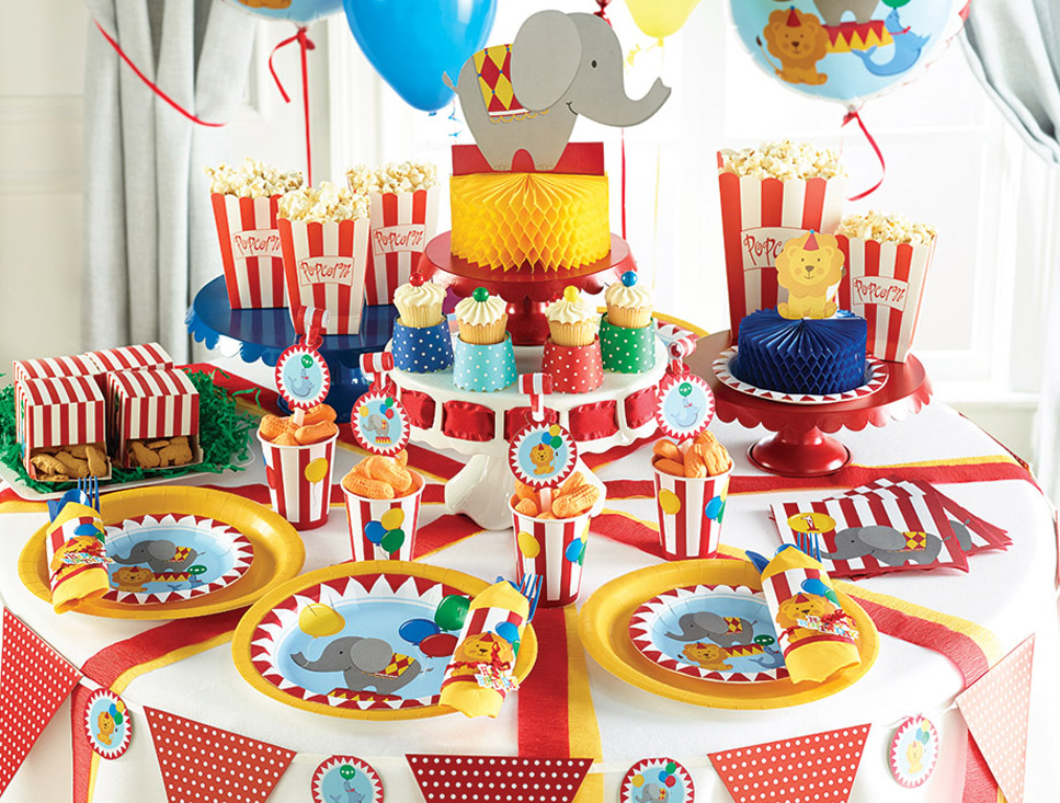 - Mimishny style. A great option for birthday of the smallest. Such celebrations, of course, more convenient to hold in a buffet style. It is difficult to sit with a baby at the table, but to make a candy bar for children and an appetizing buffet table for adults - why not? It is not very convenient and even dangerous to bang glass and ceramic plates, to walk with fragile wine glasses around the house where there are children. A color disposable dishes and looks like a delight to the eyes, and completely safe.