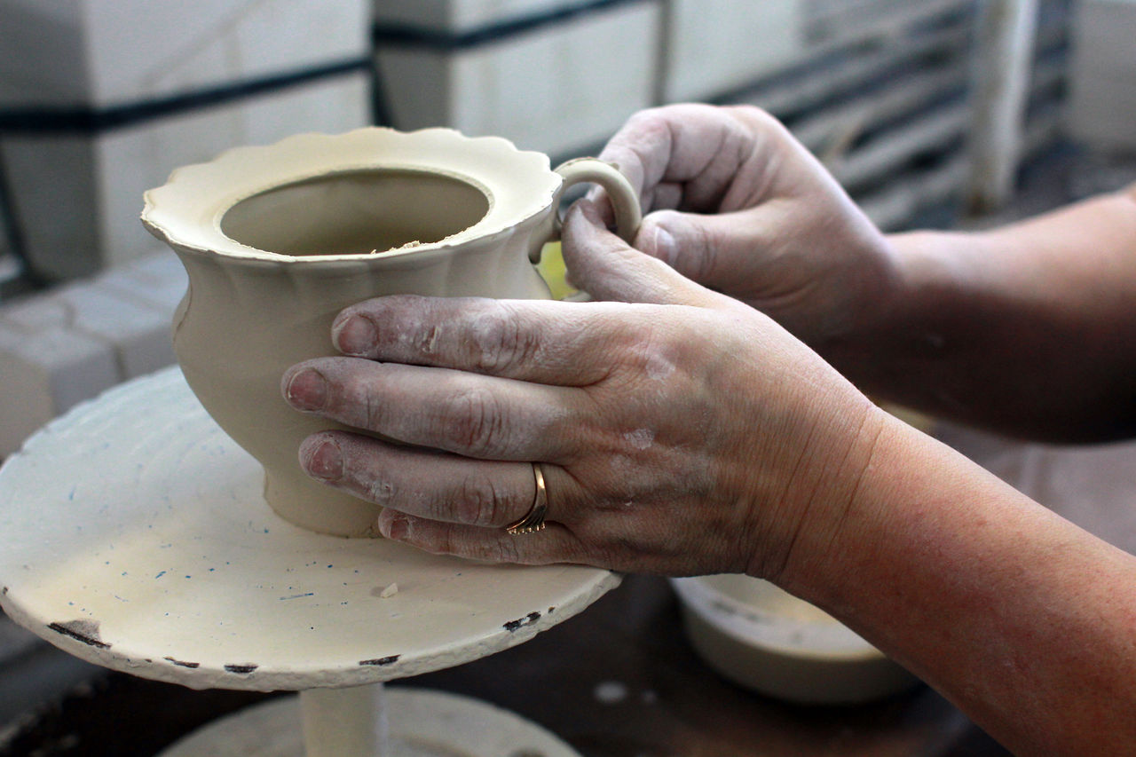 - The details of small objects are classically molded, but the handles of large ones are molded. The handles are subsequently glued with a liquid solution - slip.