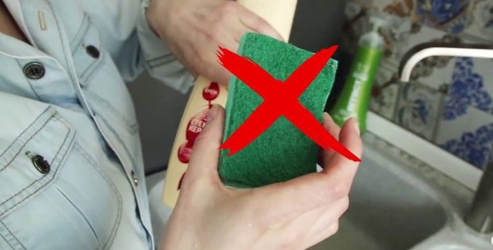 - From household chemicals should be completely abandoned. The maximum that you can afford is a neutral baby soap. In the presence of stains and muddy spots can be dripped into the water a little ammonia.