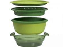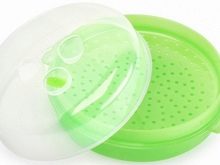 Steamers for a microwave can have various form. The choice depends on the preferences of the buyer. On the shelves are presented round, square, oval and rectangular models. Consumers are advised to purchase round steamers, as they are more convenient than other models. When buying, you should pay attention to the size of the design, since too large can simply not enter into an existing microwave oven. You also need to consider how much you need to cook food.