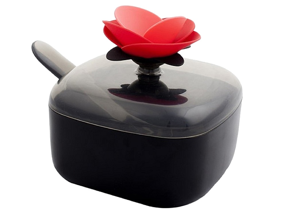 A black sugar bowl with a red rose will be a bright accent on your table.