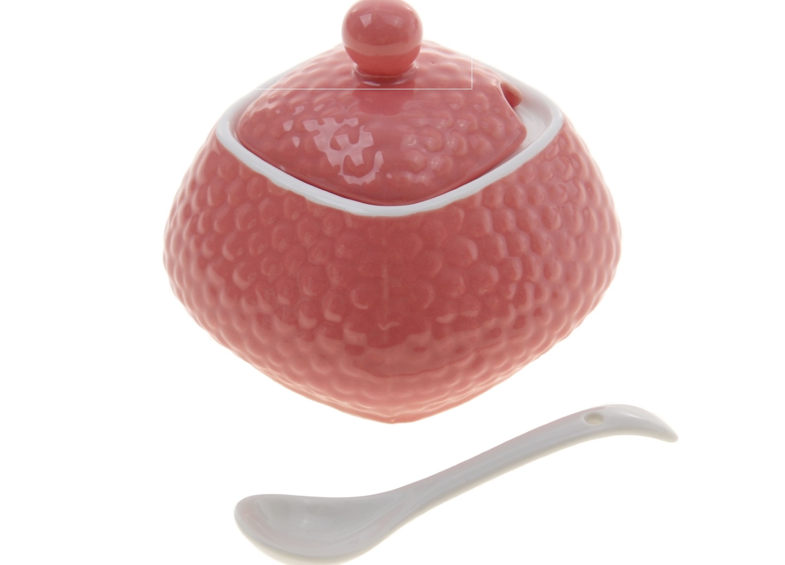 - Set with a spoon and a lid. This kit has a special spoon "sovochek." Such sugar bowls are good for hygienic reasons. Since you do not need to look for where to put a spoon after use. Such options look harmonious, since both the sugar bowl and the spoon are made in the same style and complement each other. But there are also disadvantages in such models - a recess for a spoon can make the model leaky, and therefore unstable to the penetration of odors and moisture.