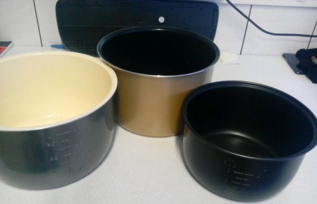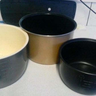 That what is covered inside the cup, depends on the purpose of the multicooker and on what is planned to cook in it - fry, boil, simmer, bake or do everything at once. There are models in which the design can be provided for several cups - for different operating modes. Also, manufacturers are developing universal cups that can be selected for different models of multi-cookers.