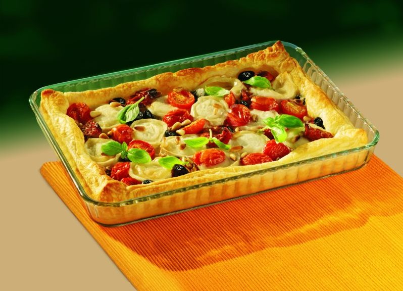 The ware from special heat-resistant glass can be the most different. It can be square, rectangular, oval or round baking molds. Forms with low sides are perfect for cooking casseroles or open pies, and high side versions can be used for cooking meat, fish or biscuits.
