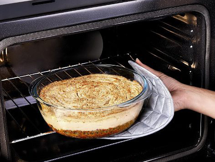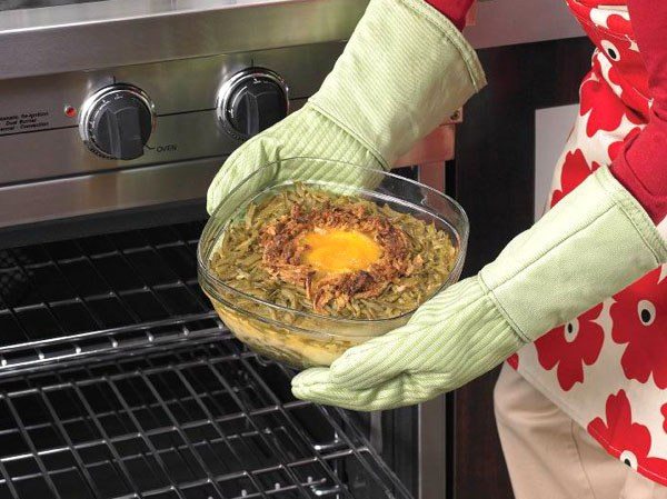 - After cooking, do not rush to immediately remove the form. Let the dish stand in the oven for 10 minutes. Once you have removed the finished dish from the oven, you can not put the dishes on the stone countertop. Be sure to prepare in advance a wooden stand or just a chopping board. In addition, it is important to remember that the surface on which you are putting the hot glass form must be dry.