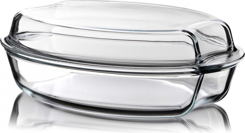 Durable heat-resistant glass is also used to make utensils, which are equipped with convenient covers. Usually such a product has thicker walls than a roaster or baking dish. Thereby the dish is ideally baked inside such utyatnitsy and it turns out especially tasty.