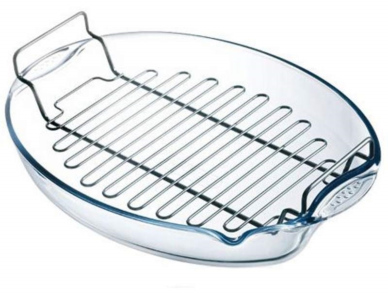 In addition, the glass is made roomy braziers, which is attached to a special grill. As a rule, such a product has a rectangular or square shape. In such a roaster, it is convenient to bake fish, meat or vegetables.
