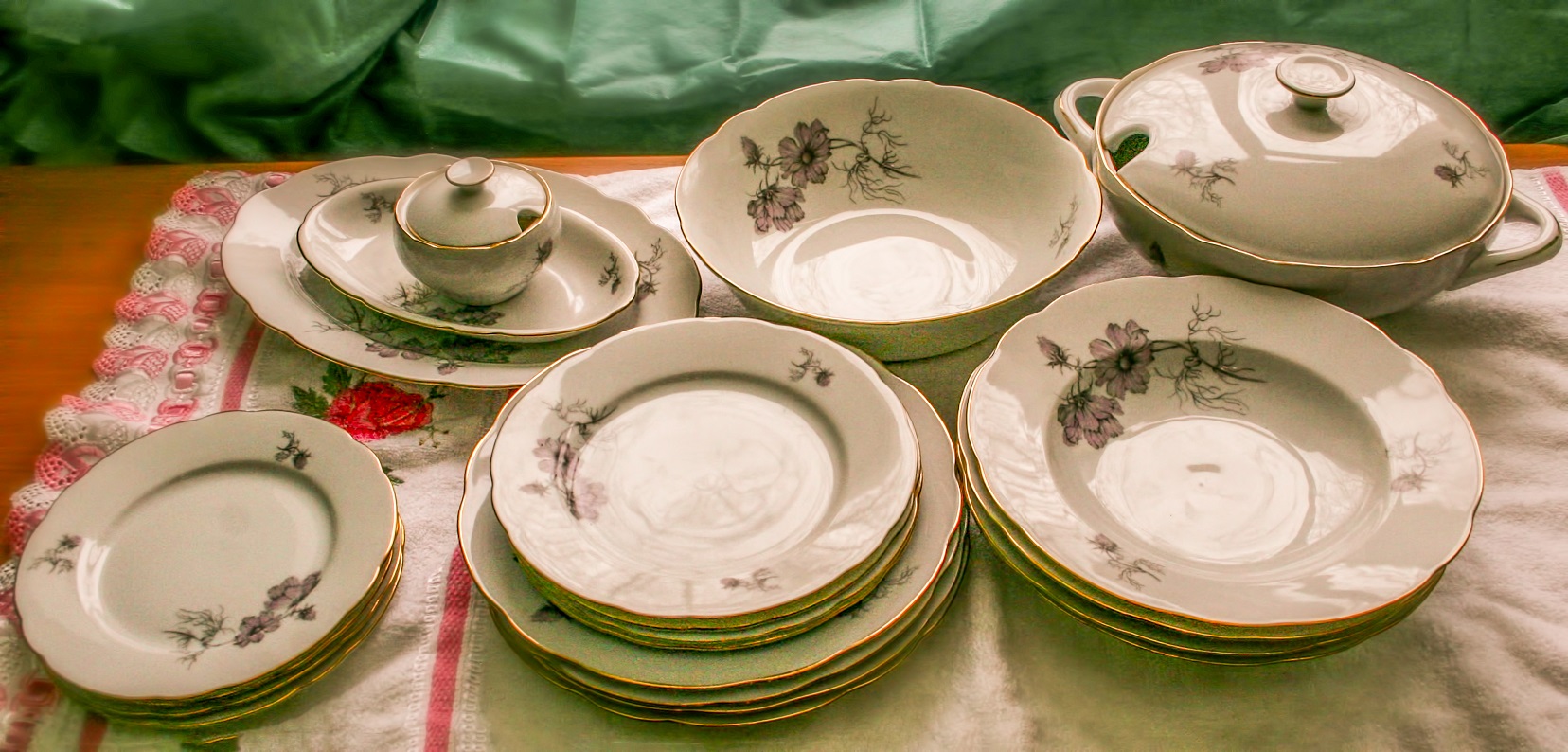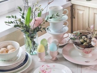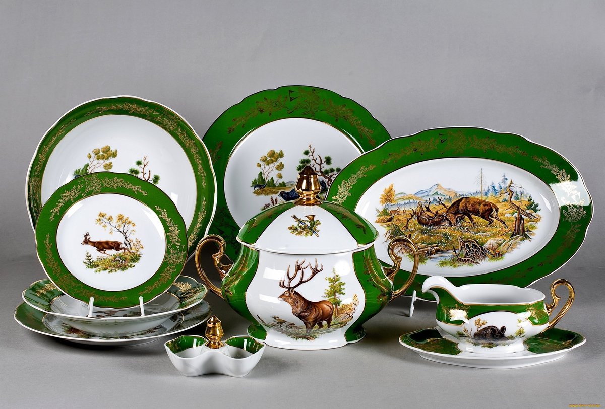 Porcelain table, tea and coffee sets perfectly fit into the composition.