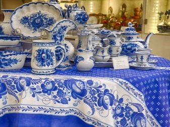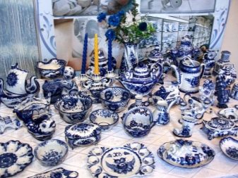 - Gzhel more subtle, laconic, so it looks great in the kitchen, decorated in white, blue tones. Dishes with such curls will decorate even a strict interior, bring a lot of freshness, life and positive emotions into it.