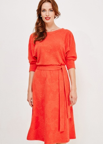 - choosing a dress of French length (midi), the belt is knotted just above the natural waistline;