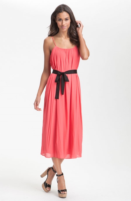 For girls who adore delicate summer dresses with straps, you can draw a waist with a narrow Japanese-style belt. It is not necessary to choose a greater length at all: it is better if the belt is tied with a demi-pant or having small ears besides the knot.