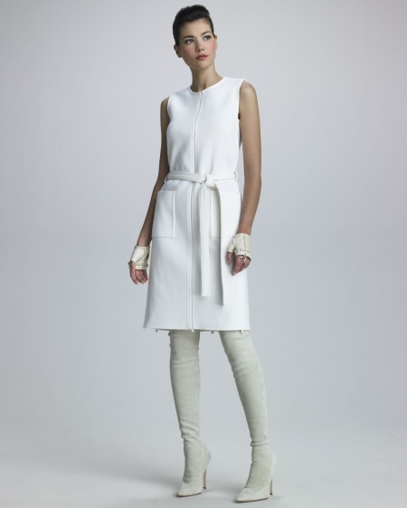 A short straight dress of light or white color can be decorated with a wide leather belt with a braided cord. Well, if the color of the belt matches the shade of the handbag, it will bring harmony into the trendy set.