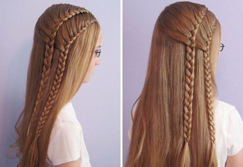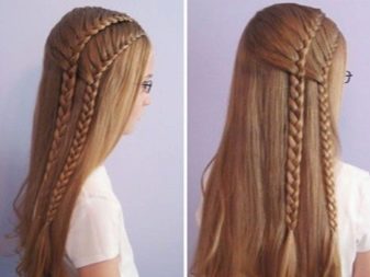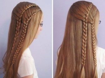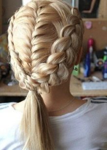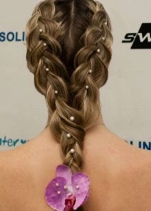 If desired, you can braid two such braids, leaving them in the form of snakes behind their shoulders or laid in the lower occipital zone with the help of studs and ribbons.