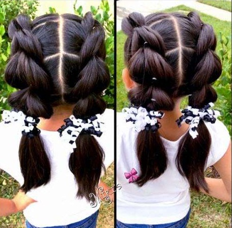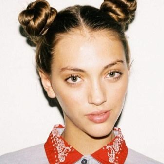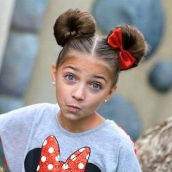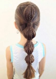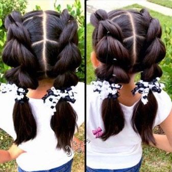 Children with short hair often choose a two-tail hairstyle for going to school. Girls are able to collect hair in this way themselves, or it will make mom.