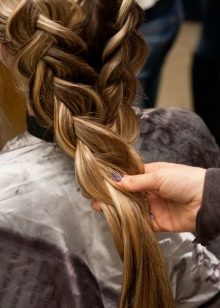 Very quickly, you can create a French braid. It is required to select three strands on the head, begin to weave in the usual way, and then weave the remaining hair in equal parts, adding them to the weaving. If, when creating a braid, the side strands are not superimposed on the central one, and winding them under the bottom, we get the opposite French braid. She is interesting for its texture.