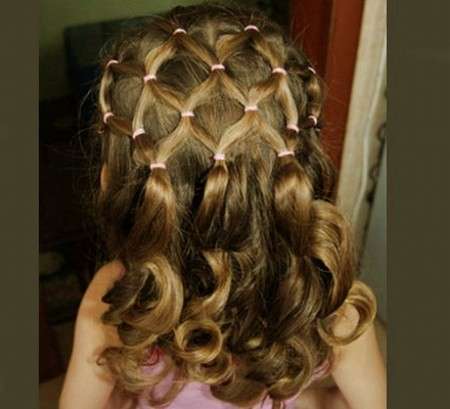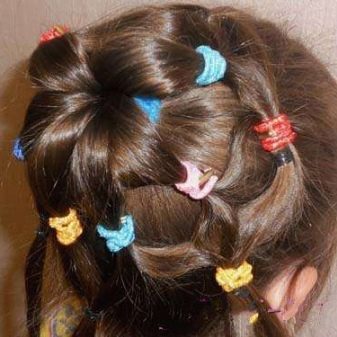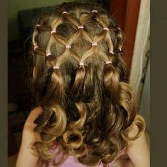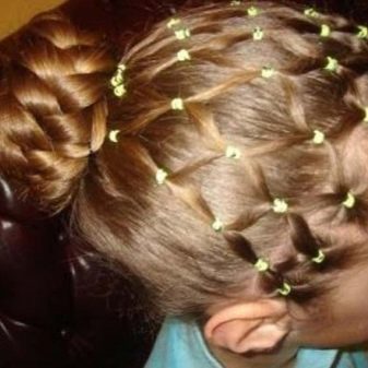 Looks festively created on the head mesh of his own hair. To create it, you need to take a transparent silicone gum. The hair is divided into small tails, gum is removed from the root so that the strands can lie flat. The tails themselves are divided in two, and the halves are fastened together with new rubber bands.