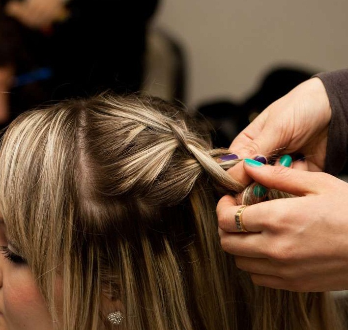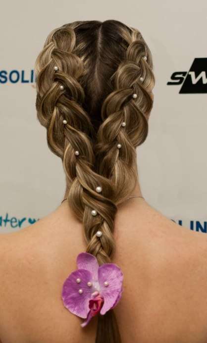 - when all the hair is matched, the strands from both braids are joined and doblet to the end together in the usual three-strand way.