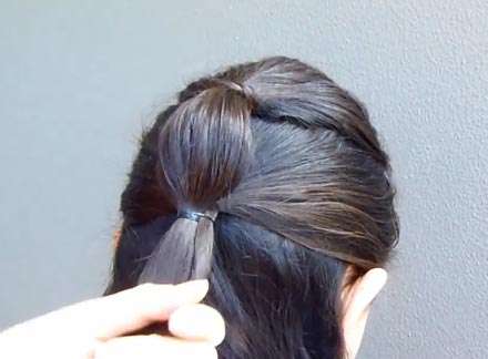 - to make a tail on the head, and then not fully stretch the hair through the elastic - it turned out to be a loop;