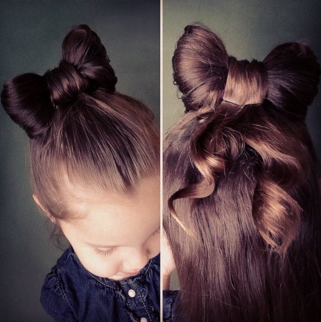 The bundle itself can be made in the form of a bow. From the side of making it seems difficult, although in fact in creating such a hairstyle is nothing complicated, and it is also suitable for school: