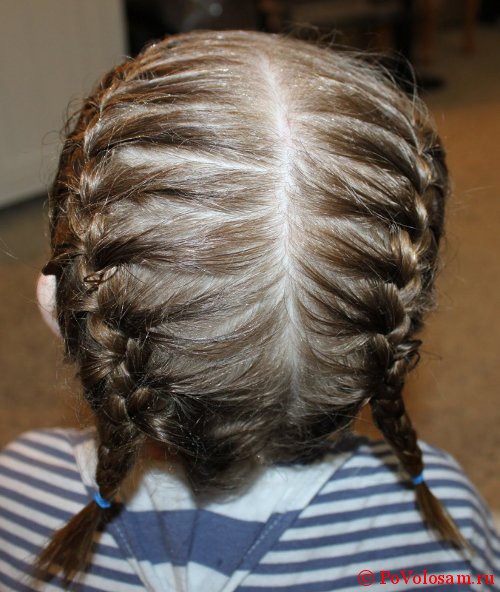 The principle of weaving is the same as that of the French. Its main difference is only that strands must be applied not to each other, but to each other. This kind of weaving is the opposite. It can also be located on top of the head, be all over it, on the side, or even on both sides. This method is best to learn when the child is older, and on the head will be a hair of more luxuriant.