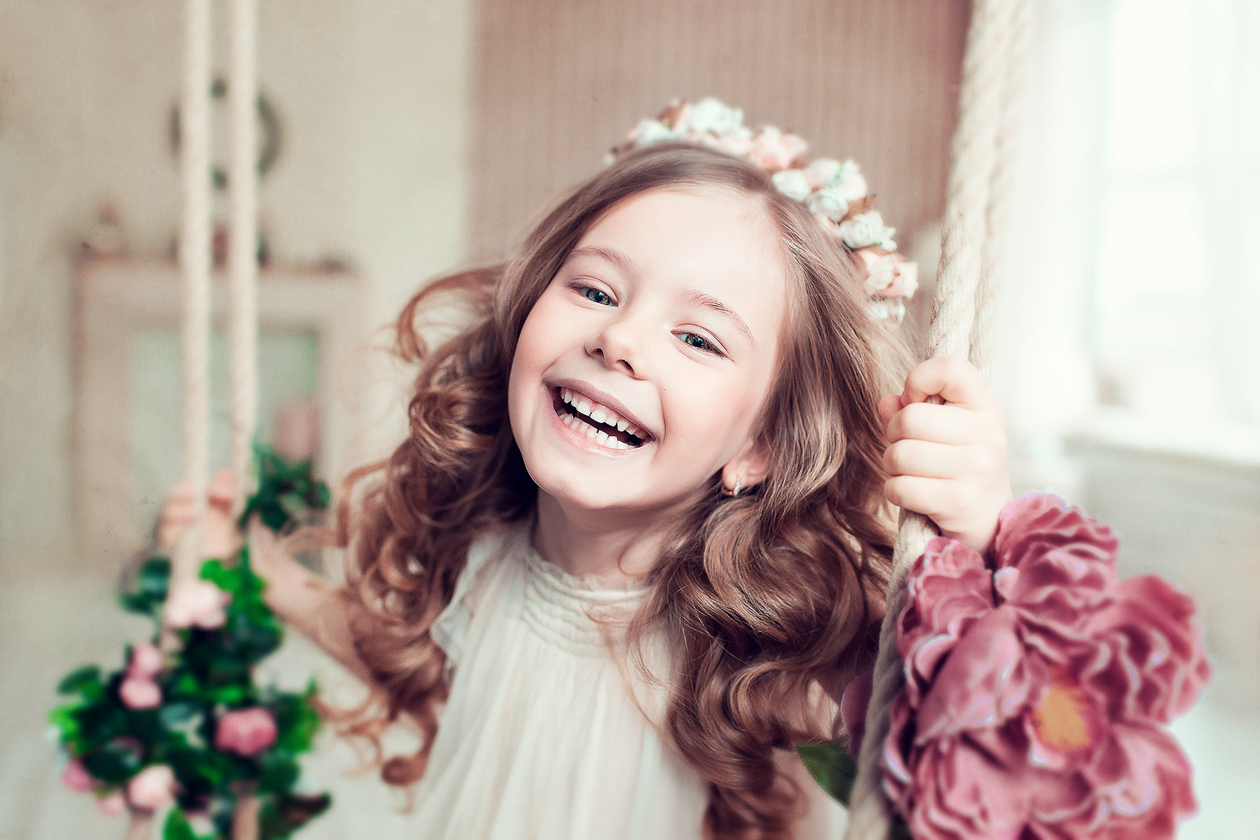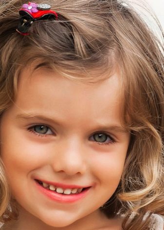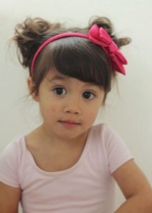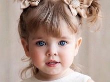 As an original addition to children's hair, you can use a variety of hairpins and bows, as well as hoops and headbands - studs should be left for special occasions. Little girls often wear bangs, she was and remains in trend, especially effectively she looks on short and medium curls. The most common straight bangs, as well as oblique and long - each mother can create an individual style for her baby.