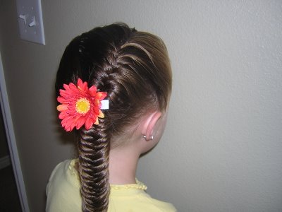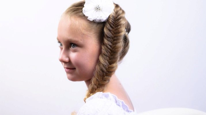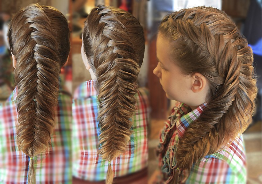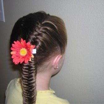 It looks very impressive on girls “fish tail”, it can be braided in just 5 minutes.To do this, the hair is carefully combed so that you can easily separate the strands, you do not need to comb the curls in addition, so you will only confuse the delicate children's hairs.