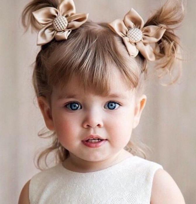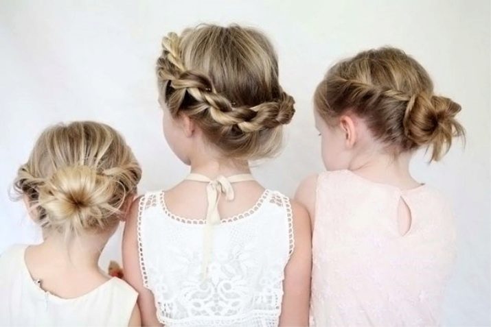Among the moms, the bun is very popular - it is a universal hairstyle for a little face that will suit girls involved in gymnastics, dancing or another kind of sport. However, the uniqueness of the beams lies in the fact that if you add a small decor to it - a flower or a bow, then in no time the hairstyle turns into a festive one and the baby looks like a real fairy-tale princess.