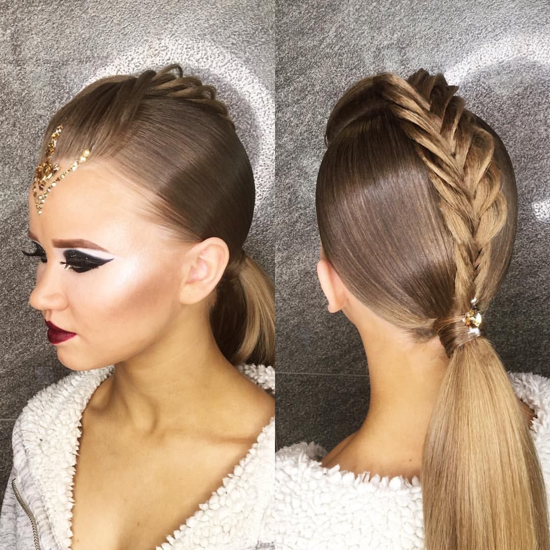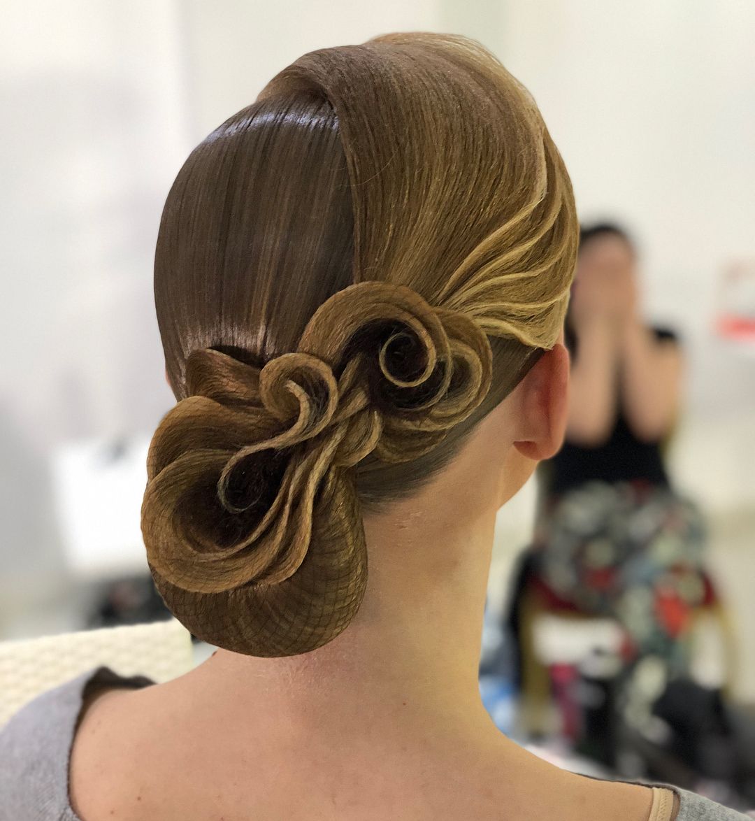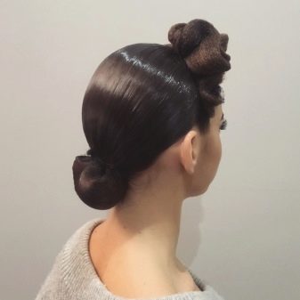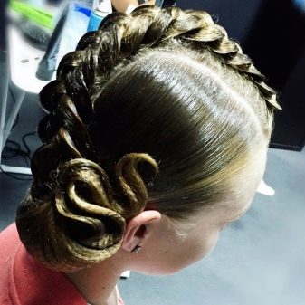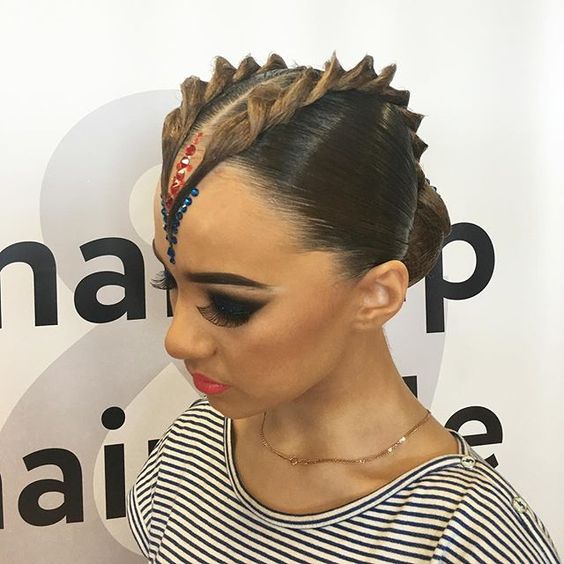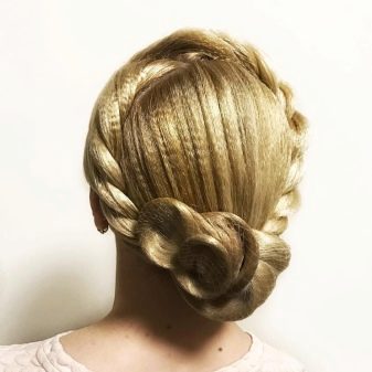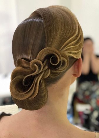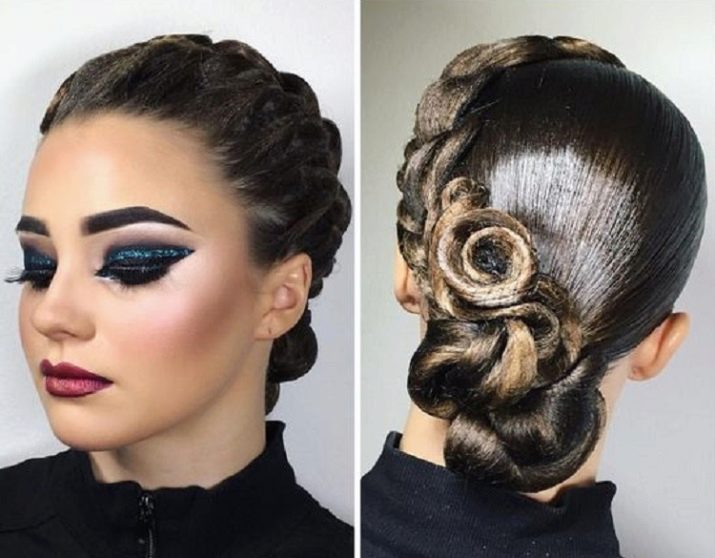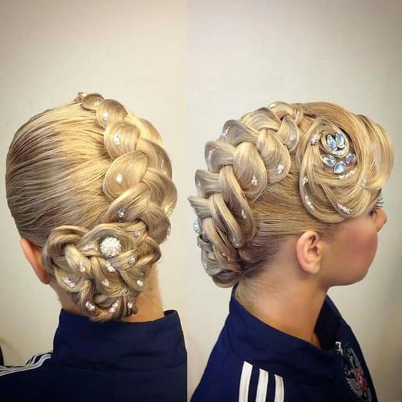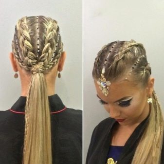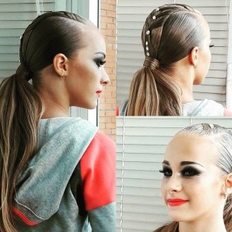 The hairstyle for performance can be simple and concise, made with the help of one element, and can combine several techniques. For a sporting competition, it is best to contact a professional hairdresser who has experience in creating such hairstyles. You can choose one of the main varieties and supplement it with individual elements.